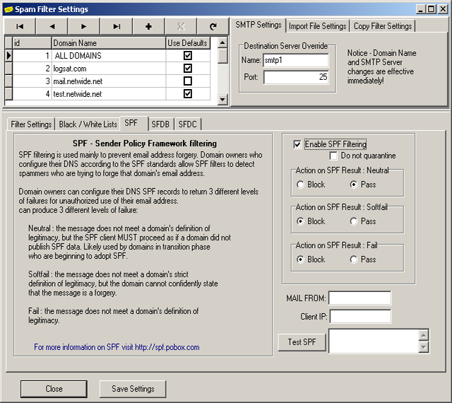 SPF Filter settings can be applied to individual domains